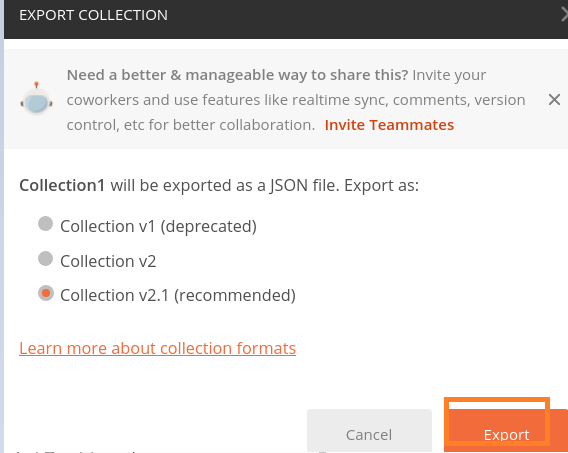 步驟 2 − 選擇單選按鈕集合 v2.1(推薦),然後在匯出集合彈出視窗中單擊匯出按鈕。