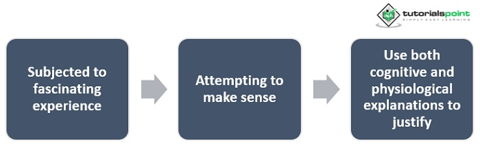 沙赫特調和了詹姆士認為軀體反應先於情緒體驗的觀點,以及坎農批評這些反應缺乏特異性,因此無法引發特定情緒的觀點。沙赫特的理論有兩個因素或步驟。第一步涉及刺激輸入,導致未分化的生理喚醒狀態。在第二步中,根據輸入的特徵來解釋這種喚醒。將喚醒歸因於喚醒的推定原因的這種認知過程導致了特定的喚醒。沙赫特,就像詹姆士一樣,將情緒與情緒體驗(即感覺成分)聯絡起來。情緒的強度(Q2)由喚醒的程度(即軀體成分)決定。