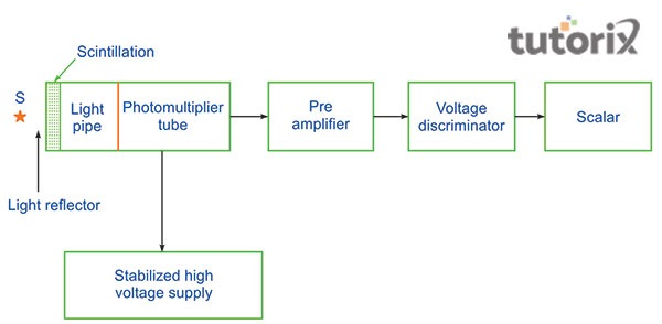 閃爍計數器因其效率、計數率和高精度而非常有用。產生的脈衝在適當放大後由傳統的電子電路檢測。正如 Kotapati & Bates (2018) 所述,在閃爍計數器中,α粒子產生的脈衝由磷光體 ZnS 檢測,效率為 100%。當閃爍體與電子光感測器(如光電二極體、光電倍增管和 CCD 相機)整合時,就會得到閃爍探測器或計數器。