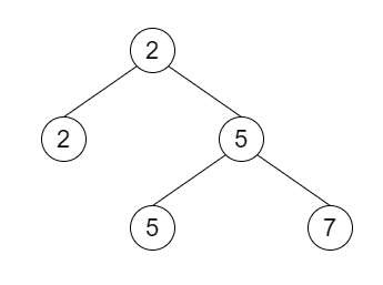 假設存在一個非空的特殊二叉樹,其中包含一些非負值,樹中的每個節點正好有兩個或零個子節點。如果節點有兩個子節點,則該節點的值是其兩個子節點中較小的值。換句話說,我們可以說 [root.val = root.left.val 和 root.right.val 中的最小值]。如果我們有這樣的二叉樹,我們需要找到由整個樹中所有節點的值組成的集合中的次小值。如果沒有這樣的元素,則返回 -1。