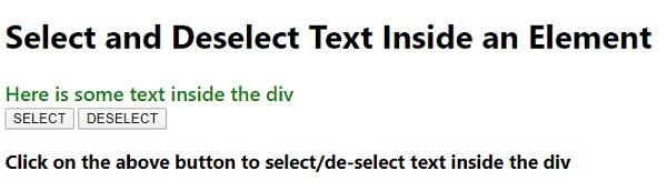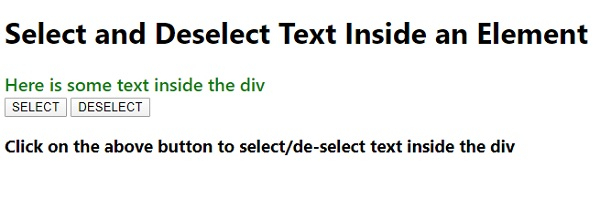 <h1>Select and Deselect Text Inside an Element</h1>