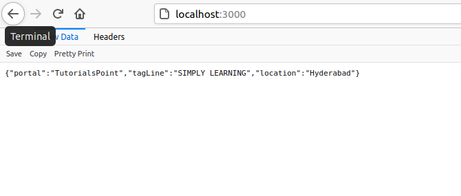 建立一個名為 json.js 的檔案,並複製以下程式碼片段。建立檔案後,使用以下命令執行此程式碼,如下例所示: