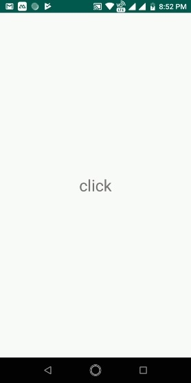 <?xml version = "1.0" encoding = "utf-8"?> <LinearLayout xmlns:android = "http://schemas.android.com/apk/res/android" android:orientation = "vertical" android:layout_width = "match_parent" android:gravity = "center" android:layout_height = "match_parent"> <TextView android:id = "@+id/text" android:layout_width = "match_parent" android:layout_height = "wrap_content" android:text = "click" android:textSize = "30sp" /> </LinearLayout>