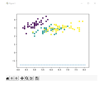 然後從訓練資料集檢索超平面的引數,並計算超平面的斜率和截距,然後使用散點圖繪製,每個類別使用不同的顏色。