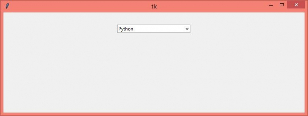 #Import Tkinter library from tkinter import * from tkinter import ttk #Create an instance of Tkinter frame or window win= Tk() #Set the geometry of tkinter frame win.geometry("750x250") #Create a Combobox combobox= ttk.Combobox(win,state= "readonly") combobox['values']=('C++','Java','Python') combobox.current(2) combobox.pack(pady=30, ipadx=20) win.mainloop()
