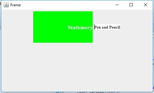 若要按 X 軸將標籤內容右對齊,請使用 setHorizontalAlignment() 方法並設定位置。我們首先設定一個標籤元件。我們還設定了標籤背景顏色,以便可以正確檢查標籤內容的對齊情況 -