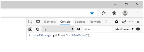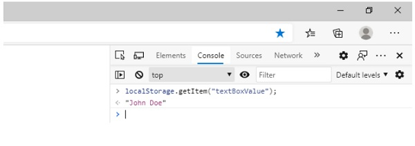 現在,要從 localStorage 獲取值,請使用以下概念並在控制檯上獲取值 -