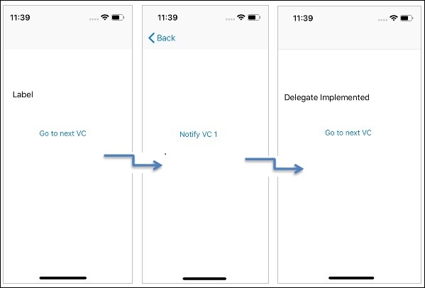 extension FirstViewController: SecondViewControllerDelegate { func buttonPressedInVC2() { self.lblOne.text = "Delegate Implemented" } }