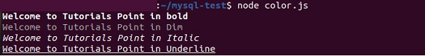console.log(chalk.bold('Welcome to Tutorials Point in bold'));