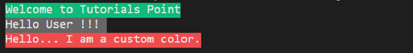console.log(chalk.bgGreen('Welcome to Tutorials Point'));