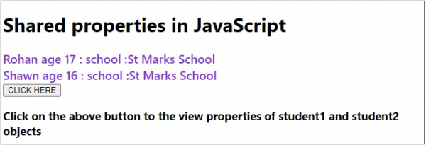 <h3>Click on the above button to the view properties of student1 and student2 objects</h3>