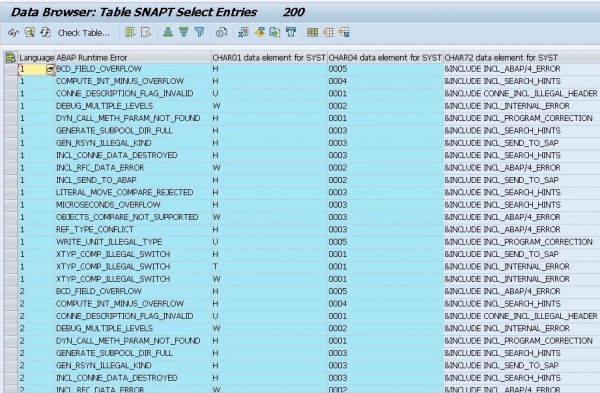 在 SAP 系統中,有一個名為“ SNAPT”的表名,可用於查詢文字。要查看錶內容,可以使用事務程式碼 SE16