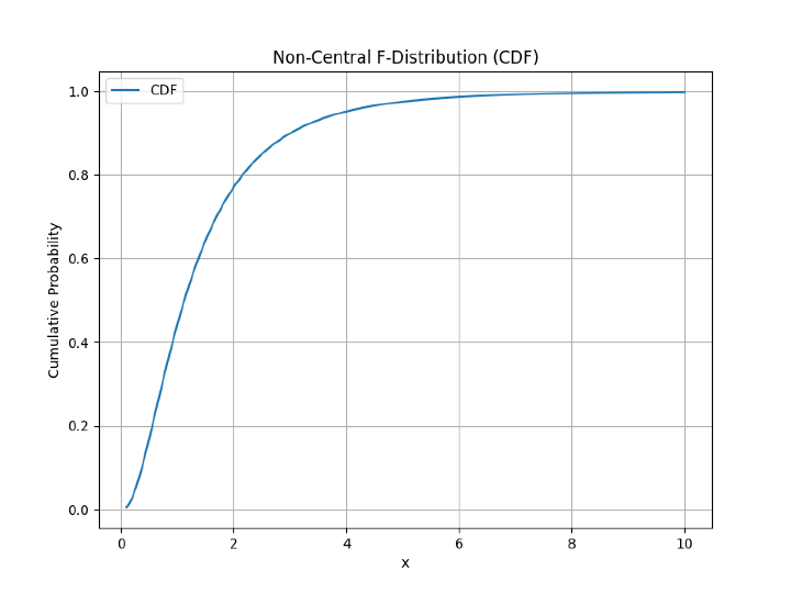 y_cdf = stats.ncf.cdf(x, num_df, deno_df, nc)