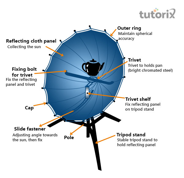 太陽能灶僅使用太陽能來烹飪食物。它的反射板用於將光線聚焦到太陽能灶內部的黑色鍋上。用太陽能烹飪可以使整個過程更簡單。它非常有益,因為它有助於我們節省燃料並減少環境汙染。許多人仍然不知道這種簡單且廉價的過程;他們仍然使用烤箱來烹飪蔬菜和其他食物。當像太陽能這樣的資源供應無限時,最好在太陽能灶中烹飪。