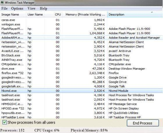 有時電腦會在系統上執行很多程序,這些程序會佔用大量資源。瞭解系統上正在執行的程序的一種簡單方法是,右鍵單擊工作列並選擇“啟動任務管理器”。單擊“程序”選項卡,然後單擊“CPU”列標題。此過程將顯示系統上所有正在執行的程序,以及記憶體使用情況和它們的描述。選擇系統上不必要的程序,然後單擊“結束程序”按鈕。如果任何程序確實使用了大量資源導致系統變慢,請永久停止該程序。