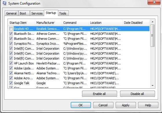 使用者可以透過以下方法獲取 Windows 在 Windows XP、Vista 或 7 中的自動載入程式列表:開始,執行,鍵入“msconfig”並按“確定”。這將開啟“系統配置”視窗,在此配置視窗中,單擊“啟動”選項卡,使用者可以使用此選項卡透過取消選中它們來停用不需要的應用程式,取消選中後,單擊“應用”和“確定”。