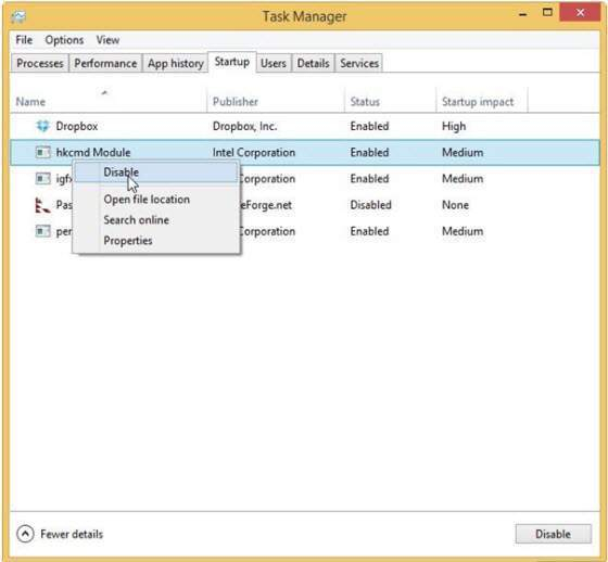 在 Windows 8 中,右鍵單擊工作列以選擇“啟動任務管理器”。開啟任務管理器後,直接開啟“啟動”選項卡或透過單擊“更多”詳細資訊。要停用某個專案,請右鍵單擊它並選擇“停用”。
