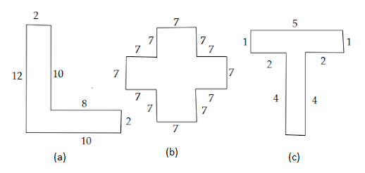 將下列圖形分成若干個矩形,並計算它們的面積。(尺寸以釐米為單位)