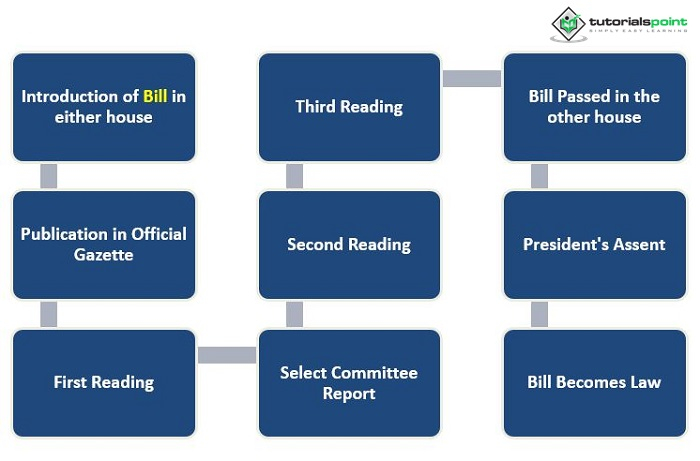 法定法透過編纂產生。立法法案或法定法的這種編纂是透過立法程式進行的。在印度,制定法律的任務已交給議會和州立法機關。印度憲法將中央和州立法機關的立法權力分為三個列表:中央列表、州列表和併發列表。
