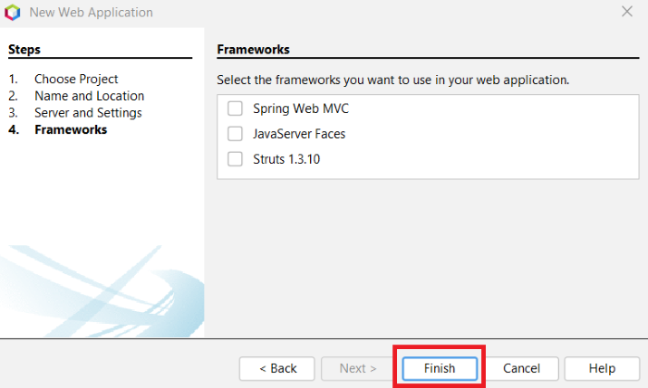 步驟 4 − 保持所有設定不變,然後單擊完成。
