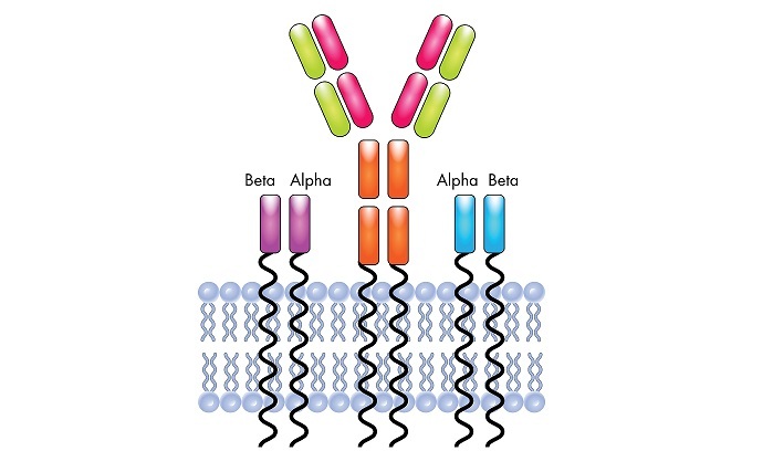 BCR 的細胞內訊號結構域由兩個訊號分子 Ig-α 和 Ig-β 組成。