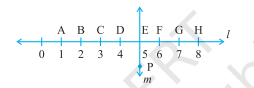 研究下圖。直線\( l \)垂直於直線\( m \)
