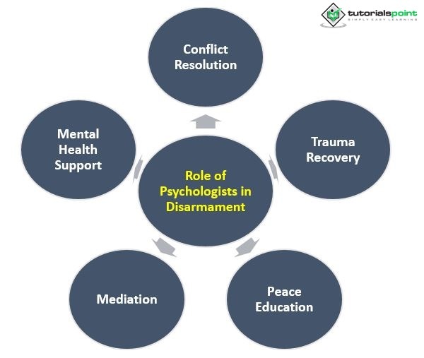 心理學家可以透過設計解決這些問題的方法並瞭解導致衝突的潛在動機和心理方面來幫助解決衝突。這可能需要與個人、社群和組織合作,以增強人際能力,從而減少暴力衝突的可能性,例如同理心和換位思考。此外,心理學家還可以培訓和協助致力於促進裁軍與和平的組織和個人,例如維和部隊、倡導裁軍的組織和人道主義組織。