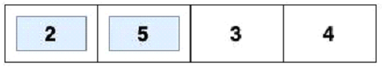 要將陣列按升序排序,請比較前兩個元素 2 和 5。
