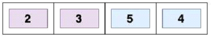 現在我們再次比較 2 和 3,此處 2 和 3 都是升序的,因此我們移動到接下來的元素 5 和 4。