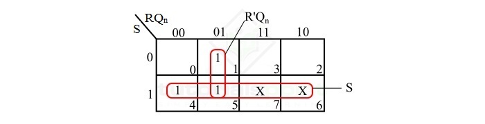 從時鐘控制 SR 觸發器的真值表中,我們可以直接寫出其輸出 Qn+1 的布林表示式如下: