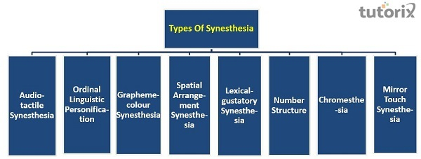 聯覺可以結合任何感官。因此,無法計算出特定的聯覺型別。一般來說,自然界中可以發現60到80種聯覺型別。下面列出了可能的感官組合,稱為聯覺。