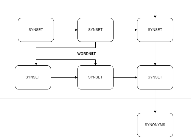 在WordNet中,單詞之間的關係得以保持。例如,“悲傷”之類的詞語含義相似,並且在相似的語境下使用。這些詞語在使用過程中可以互換。這類詞語被分組到義原集中。每個義原集都相互關聯,並具有其自身的含義。由於其概念上的關係,這些義原集相互關聯。