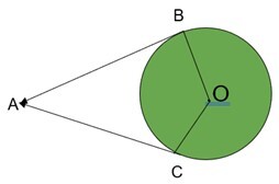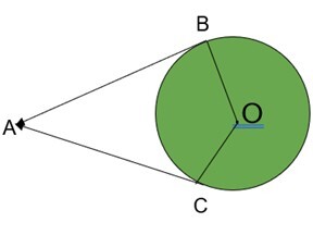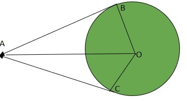 證明:A 是位於以 O 為圓心的圓外的點。AB 和 AC 是從 A 到圓分別在 B 和 C 的兩條切線。