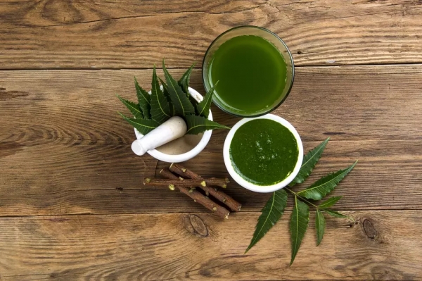 - 取2茶匙胡蘆巴種子和一把印楝葉。