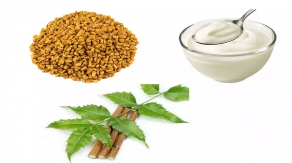 胡蘆巴在印地語中被稱為methi。像印楝葉一樣,胡蘆巴也具有抗真菌和抗菌特性。胡蘆巴種子有助於去除頭皮屑和感染。除此之外,它還有助於保持頭髮的生長。印楝葉可能會導致乾燥,因此新增酸奶作為完美的護髮素,以保持頭髮光滑。