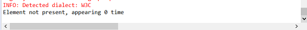 import org.openqa.selenium.By; import org.openqa.selenium.WebDriver; import org.openqa.selenium.WebElement; import org.openqa.selenium.chrome.ChromeDriver; import java.util.concurrent.TimeUnit; import java.util.List; public class ElementPresence{ public static void main(String[] args) { System.setProperty("webdriver.chrome.driver", "C:\Users\ghs6kor\Desktop\Java\chromedriver.exe"); WebDriver driver = new ChromeDriver(); String url = "https://tutorialspoint.tw/about/about_careers.htm"; driver.get(url); driver.manage().timeouts().implicitlyWait(5, TimeUnit.SECONDS); // identify element List<WebElement> l=driver.findElements(By.xpath("//*[text()='Terms of Use']")); if(l.size()== 0){ // empty list if no matching element System.out.println("Element not present, appearing "+l.size()+ " time"); } else { System.out.println("Element present, appearing "+l.size()+ " time"); } driver.quit() } }