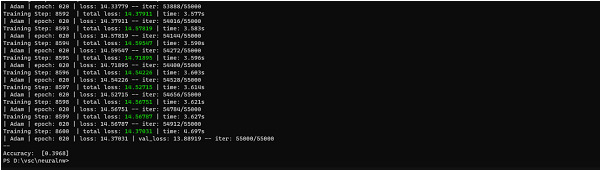 在上面的示例中,我們可以看到我們的精度率為 97.5%,這非常好。透過這種方式,我們可以透過更改最佳化器和損失函式來微調模型的精度。在這個示例中,我們看到了使用 Adam 最佳化器。