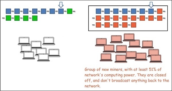 然而,透過控制網路上的大部分計算能力,單個礦工或礦工池可以破壞區塊鏈的完整性並進行欺詐。不僅如此,他們還可以壟斷並阻止其他礦工建立新的區塊。