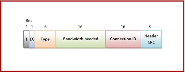 Header CRC - 使用多項式-𝑥8 + 𝑥2 + 𝑥 + 1計算的報頭8位元校驗和。