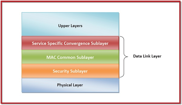 IEEE 802.16 MAC 子層是資料鏈路層的一部分。WiMAX 的資料鏈路層分為以下三個子層: