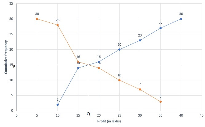 將利潤(以萬盧比計)表示在X軸上,將累積頻數表示在Y軸上。