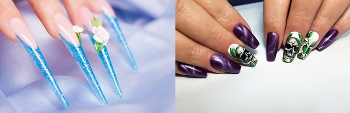 在3D美甲潮流中,使用各種材料(包括丙烯酸樹脂、凝膠,甚至真正的裝飾品,如水鑽、珍珠和鉚釘)在指甲上創作凸起或有紋理的設計。對於這種美甲藝術,通常需要經過培訓的美甲技師來雕刻和創作指甲上的複雜設計。3D技術可以賦予指甲深度和維度,使其呈現出引人注目且獨特的外觀。近年來,這種潮流越來越流行,許多美甲沙龍現在都提供3D美甲服務。