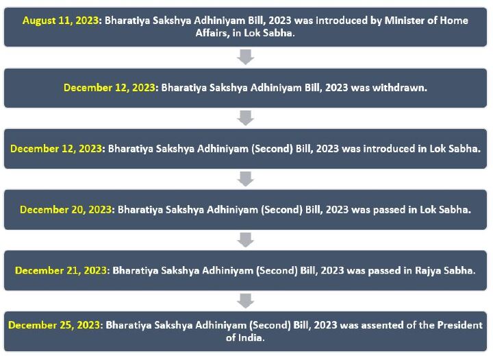2023年12月25日,印度總統最終批准了《印度證據法案》(Bharatiya Sakshya Adhiniyam),該法案成為新的證據法,取代了現行的1872年《印度證據法》。該法案經過徹底修訂和整合,旨在解決現有法案冗長複雜特性以及技術進步帶來的問題和擔憂。