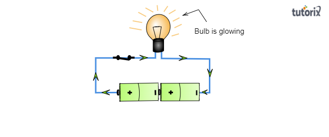 在此給定電路中,電池的正極連線到另一個電池的正極。為了使燈泡發光,我們應該將電池的正極連線到電池的負極,如下圖所示。現在,電流將流過電路,燈泡將發光。