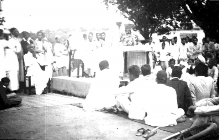 1930年甘地在鹽 सत्याग्र哈期間。照片攝於印度古吉拉特邦艾哈邁達巴德的薩達爾·帕特爾國家紀念館