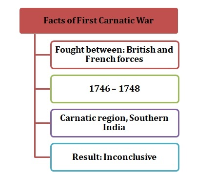第一次卡納提克戰爭發生於1746年,持續到1748年。這場戰爭發生在法國和英國之間,目的是為了擴大他們在印度的領土。衝突始於兩家公司對土地的控制權之爭,分別在各自的貿易站上。與此同時,法國海軍和英國海軍在海岸外發生交戰。這場戰爭為下一場戰爭,即第二次卡納提克戰爭鋪平了道路。