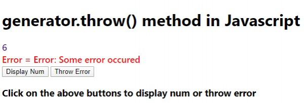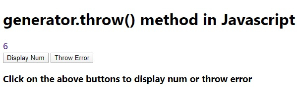 以下是 JavaScript 中 generator.throw() 的程式碼 −