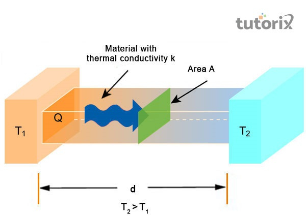 不同材料的熱導率取決於溫度或熱量。例如,銅的熱導率為 399 W/m0C,而金的熱導率為 317 W/m0C。木材的熱導率為 0.087 W/m0C,玻璃為 0.81 W/m0C。