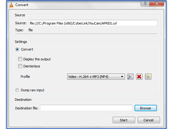 要觀看線上影片,請轉到媒體 -> 開啟網路流。開啟媒體對話方塊;轉到網路選項卡,輸入影片的URL,然後單擊播放。要儲存檔案,請在視窗底部選擇“轉換”而不是“播放”。