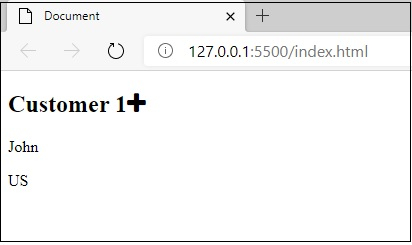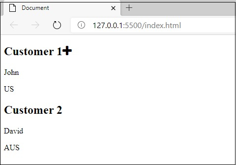 單擊“Customer1”旁邊的加號圖示後,你會得到以下輸出,即 Customer2 div 將消失 -